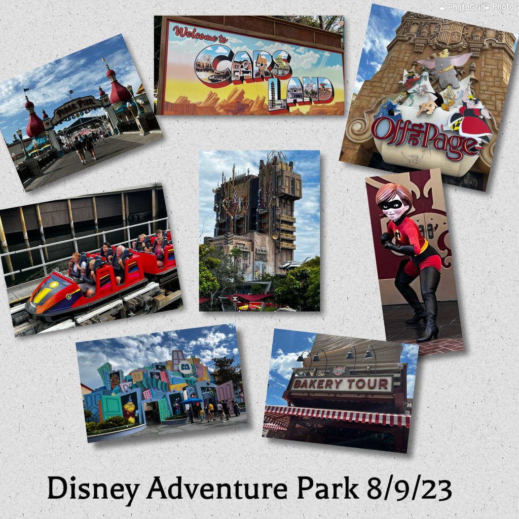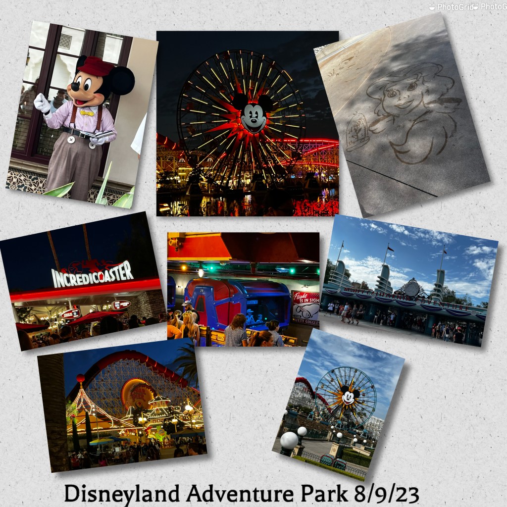 Day five – Disney California Adventure Park – Many differences to the park to any other park in WDW. Mike really enjoyed the Incredicoaster which he rode twice, once during the day and once at night. The Guardians of the Galaxy ride was redone in the Tower of Terror building, which I assumed opened recently. CarsLand is a very family friendly area, we rode Radiator Springs Racers, which was so much fun! A little scary for Lorraine but she did it anyway!