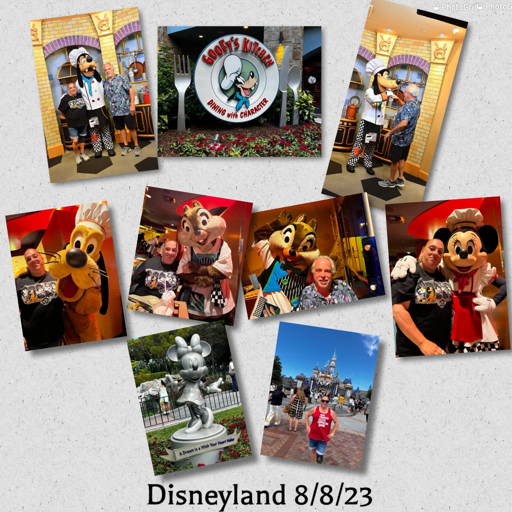 Late afternoon walk to the resort to relax a bit before our dinner reservation, Goofy’s Kitchen, which was right in the Disneyland Hotel. Dinner was a buffet with many options to choose from. We were greeted by Goofy for a photo before dinner. The restaurant is character dining with Chip, Dale, Pluto and Minnie walking around periodically throughout the meal.